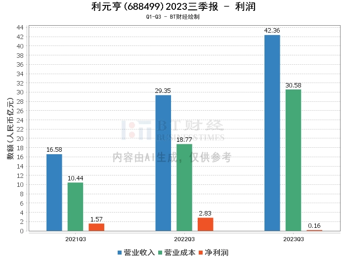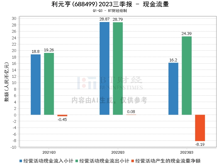 综上所述,利元亨公司在2023年三季度的营业收入有显著增长,但净利润和经营活动产生的现金流量净额均有所下滑。这主要是由于动力锂电设备业务市场竞争激烈,生产调试过程周期较长,标准化沉淀及规模量产还不充分,造成毛利率偏低及费用偏高。