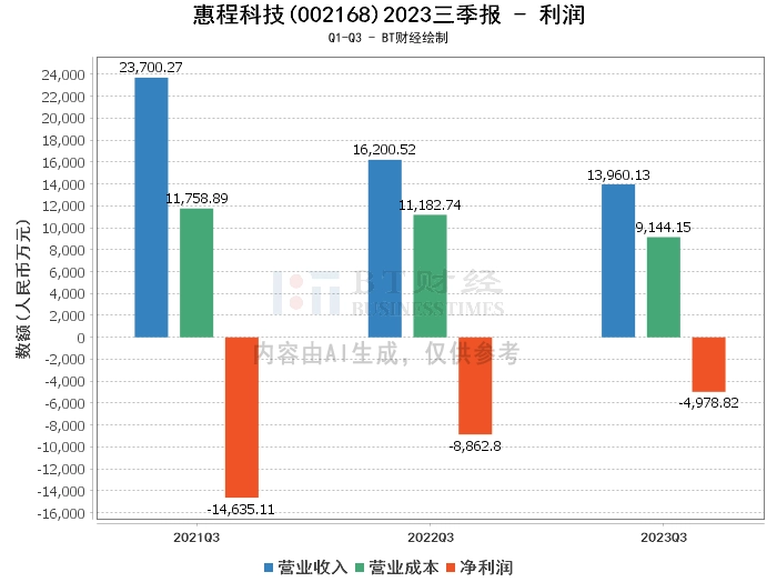 【BT财报瞬析】惠程科技2023三季报:资产负债率上升,营业收入下滑,现金流量净额大幅减少
