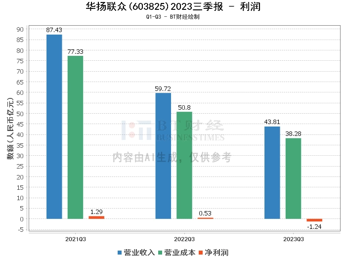 在利润方面,华扬联众2023年三季度的营业收入为43.81亿元,相比上年同期的59.72亿元,营业收入有所下降。营业利润为-1.23亿元,相比上年同期的7289.88万元,营业利润出现了亏损。净利润为-1.24亿元,相比上年同期的5264.74万元,净利润也出现了亏损。毛利率为12.63%,较上年同期的14.95%有所下降。净利率为-2.83%,较上年同期的0.88%,净利率也出现了下滑。这表明公司的盈利能力有所下降。