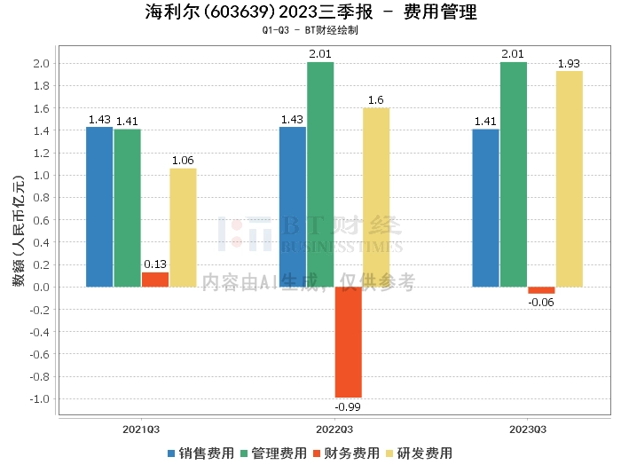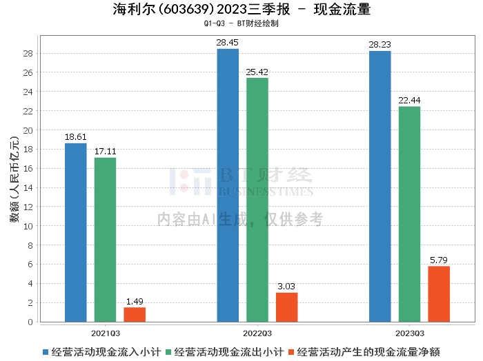 在现金流量方面,海利尔2023年三季度的经营活动产生的现金流量净额为5.79亿元,相比上年同期的3.03亿元增长了90.99%,这是一个非常积极的信号,表明公司的经营活动现金流入有显著提升,这主要得益于公司及时回笼销售货款。
