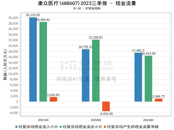 综上所述,康众医疗2023年三季度的经营状况总体上呈现出积极的态势。营业收入和净利润均实现了增长,资产负债率也保持在较低的水平。同时,公司经营活动产生的现金流量净额也实现了扭亏为盈,显示出公司经营活动的现金流入能力有所提升。