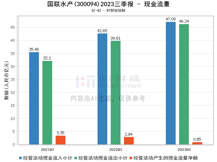 综上所述,国联水产2023年三季度的经营状况相比上年同期出现了较大的下滑,尽管营业收入有所增长,但净利润大幅下滑,经营活动产生的现金流量净额也大幅减少。这可能意味着公司在经营活动方面存在一定的压力。