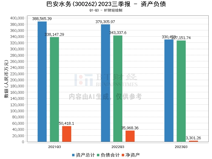 【BT财报瞬析】巴安水务2023三季报:总资产和负债均有所下降,经营活动现金流量净额大幅提升