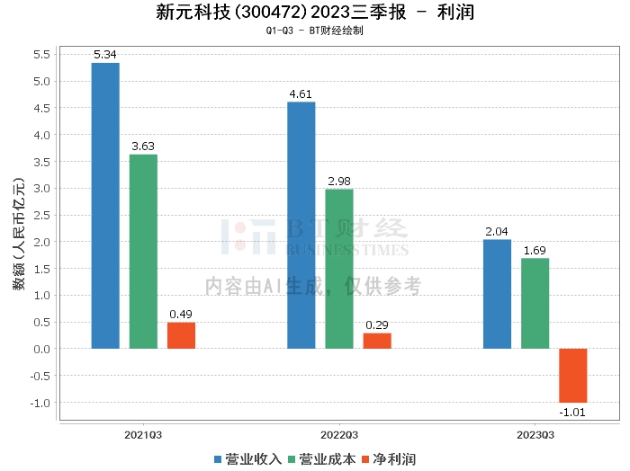【BT财报瞬析】新元科技2023三季报:营收净利双降,智能装备制造业前景待观察