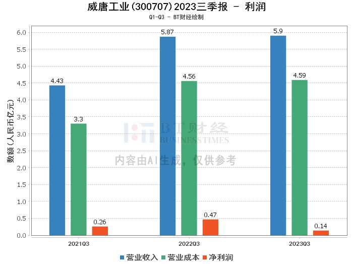 综上所述,威唐工业在汽车冲压模具和冲焊零部件领域的技术实力和市场竞争力较强,公司的业务增长有望。然而,公司的营业利润和净利润在本报告期内有所下降,这可能是由于公司在扩大市场、提升技术和提高产品质量等方面的投入增加。同时,公司的资产负债率也有所上升,这可能是由于公司在扩大生产规模和提高生产效率等方面的投入增加。