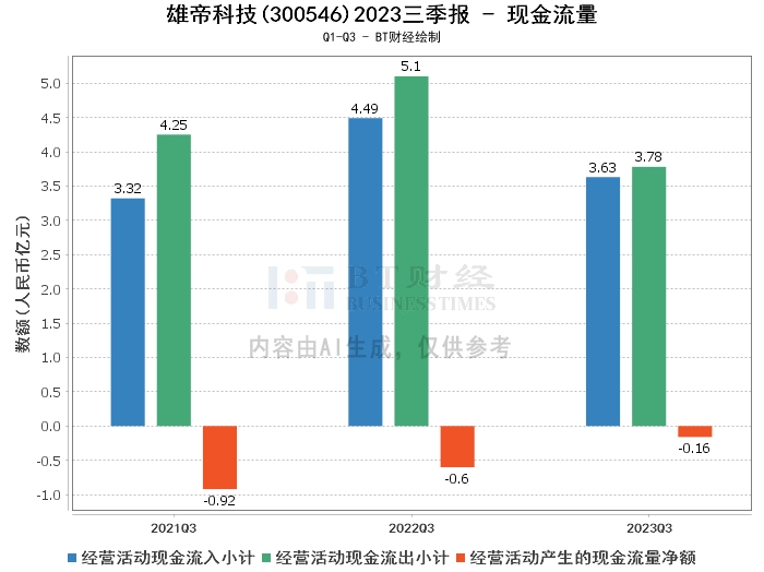 在现金流量方面,公司2023年三季度经营活动产生的现金流入为3.63亿元,较上年同期的4.49亿元减少。经营活动产生的现金流出为3.78亿元,较上年同期的5.1亿元减少。