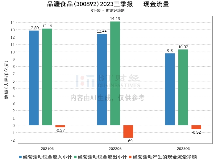 综上所述,品渥食品在2023年三季度的经营状况相对稳定,但净利润面临压力。资产负债率保持稳定,但营业收入和净利润均有所下降。经营活动产生的现金流量净额有所增加,但现金流入和现金流出均有所减少。