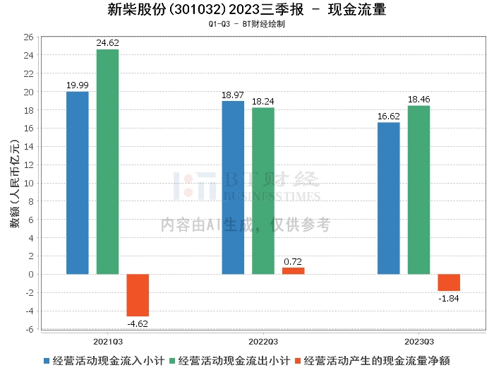 在现金流量方面,新柴股份2023年三季度经营活动产生的现金流量净额为-1.84亿元,相比上年同期的7228.75万元下降了353.95%。这主要是由于本期销售商品收到的现金减少。