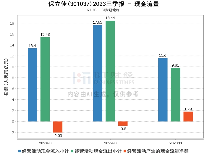 综上所述,保立佳在2023年三季度的经营状况总体稳定。尽管营业收入有所下降,但公司通过有效控制营业成本,实现了营业利润和净利润的大幅增长。同时,公司的资产负债率也有所下降,资产负债结构进一步优化。此外,公司的现金流量状况也有所改善,经营活动产生的现金流量净额大幅增长。