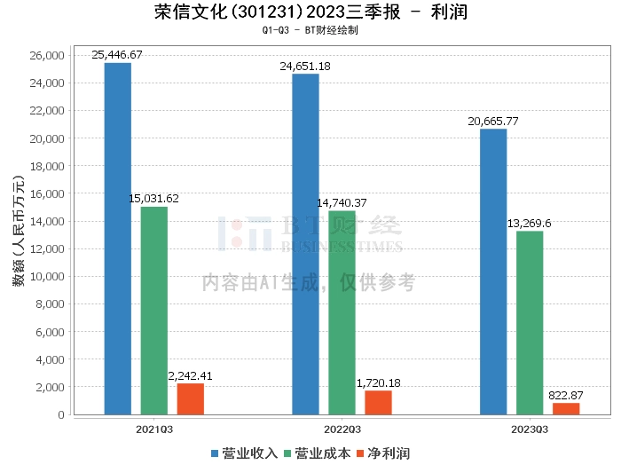 【BT财报瞬析】荣信文化2023三季报:营业收入和净利润双降,现金流量净额改善