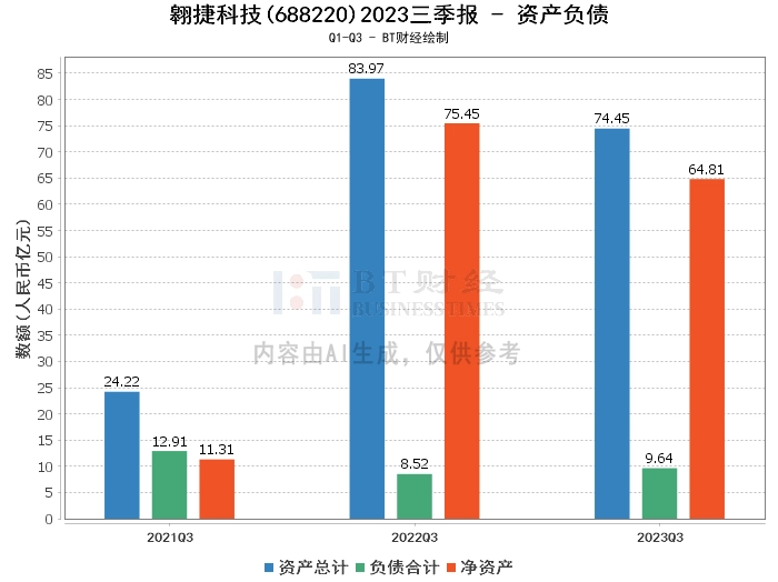 在资产负债方面,翱捷科技2023年三季度末的总资产为74.45亿元,相比上年度末的83.23亿元有所减少。负债合计为9.64亿元,略高于上年度末的8.51亿元。公司的净资产为64.81亿元,较上年度末的74.72亿元有所下降。资产负债率为12.94%,较上年度末的10.22%有所上升。