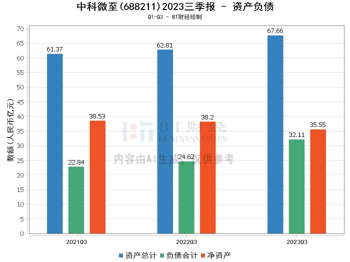 从资产负债方面来看,中科微至的总资产在本报告期末达到了67.66亿元,相比上年度末的55.53亿元增长了21.83%。负债合计在本报告期末为32.11亿元,相比上年度末的19.84亿元有所增加。净资产在本报告期末为35.55亿元,相比上年度末的35.69亿元略有下降,资产负债率从上年度末的35.73%上升到了本报告期末的47.46%。