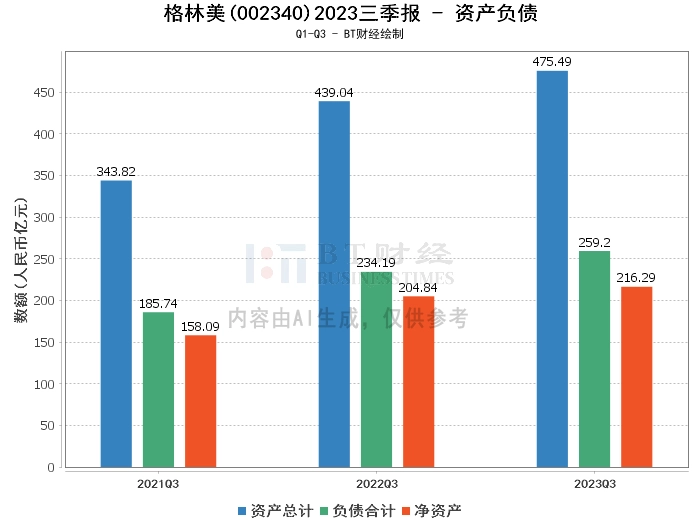在资产负债方面,格林美2023年三季度的总资产为475.49亿元,相比上年度末的441.3亿元有所增加。负债合计为259.2亿元,较上年度末的232.58亿元也有所上升。公司的净资产为216.29亿元,相比上年度末的208.71亿元略有增长。资产负债率为54.51%,较上年度末的52.7%有所上升。