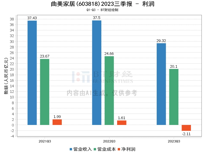 【BT财报瞬析】曲美家居2023三季报:收入减少,净利润下滑,现金流量净额增加
