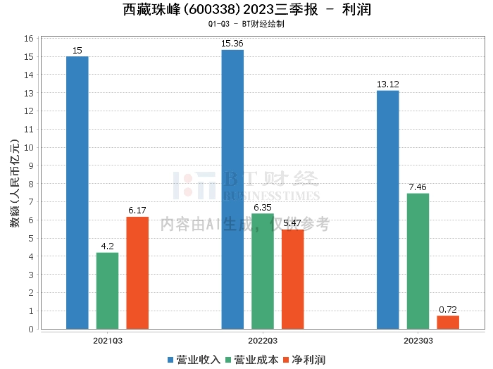 【BT财报瞬析】西藏珠峰2023三季报:主营产品价格和销量下滑,净利润大幅度下降
