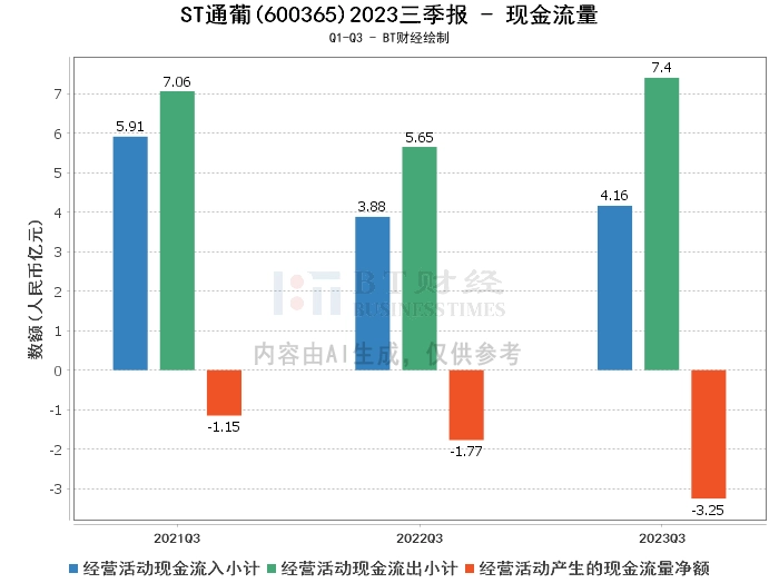 综上所述,ST通葡公司在2023年三季度的经营状况表现复杂。虽然营业收入有所增长,但由于营业成本的增加,导致毛利率下降,净利润出现亏损。同时,公司的现金流出增加,导致经营活动产生的现金流量净额为负。然而,公司的电商业务表现亮眼,与多个知名品牌建立了长期合作关系,这可能为公司未来的发展提供新的增长点。