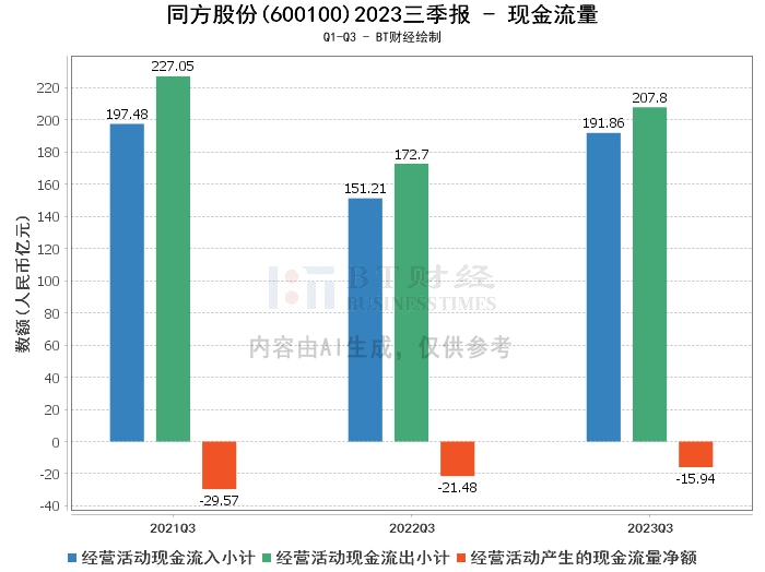 在现金流量方面,年初至本报告期末的经营活动现金流入小计为191.86亿元,较上年同期的151.21亿元增加。经营活动现金流出小计为207.8亿元,较上年同期的172.7亿元增加。