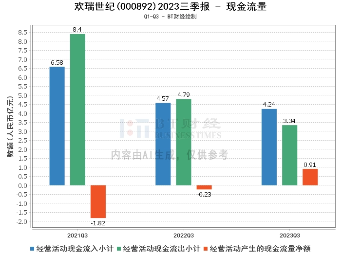 综上所述,欢瑞世纪在2023年三季度的经营状况出现了一些挑战。营业收入和利润均有所下滑,主要是由于影视剧销售减少所致。然而,公司的电商收入增长显著,现金流量净额也有所增加,这些都是公司未来发展的亮点。