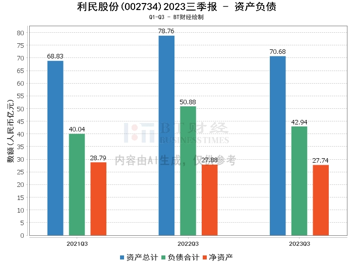 从资产负债方面来看,利民股份2023年三季度末的总资产为70.68亿元,相较于上年度末的70.56亿元有所增加。负债合计为42.94亿元,较上年度末的42.16亿元有所上升。净资产为27.74亿元,相较于上年度末的28.4亿元有所下降。资产负债率为60.76%,较上年度末的59.75%有所上升。