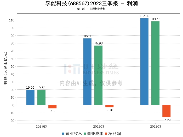 在利润方面,孚能科技2023年前三季度的营业收入为112.32亿元,较上年同期的86.3亿元有所增长。营业成本为108.48亿元,较上年同期的76.93亿元有所增长。毛利率为3.42%,较上年同期的10.86%有所下降。归属于上市公司股东的净利润为-15.63亿元。
