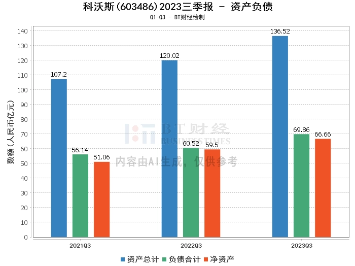 科沃斯公司的总资产在本报告期末达到136.52亿元,相比上年度末的133.1亿元有所增长。负债合计为69.86亿元,相比上年度末的68.79亿元略有增加。净资产为66.66亿元,相比上年度末的64.31亿元有所提升。资产负债率为51.17%,相比上年度末的51.69%有所下降,显示出公司的财务状况稳健。