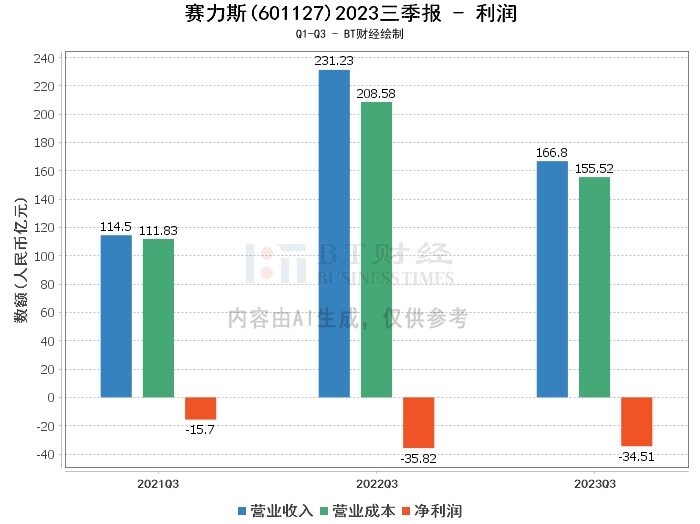 【BT财报瞬析】赛力斯2023三季报:营业收入和净利润双降,现金流量净额反弹