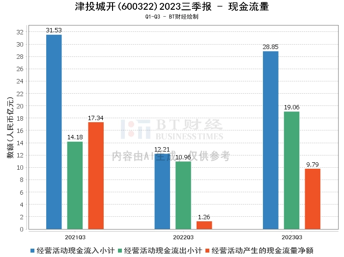 综上所述,津投城开公司在2023年三季度的经营状况总体稳定,营业收入和现金流量净额均有所增长,但营业利润和净利润有所下降。公司在房地产开发领域具有丰富经验和核心竞争力,通过不断提升管理水平和核心竞争力,致力于实现持续稳定的发展。
