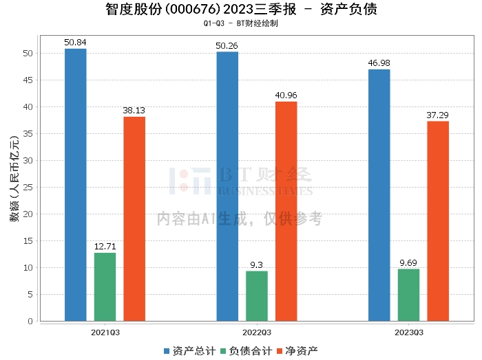 在资产负债方面,2023年三季度,智度股份的资产总计为46.98亿元,相比上年度末的42.97亿元有所增长。负债合计为9.69亿元,相比上年度末的7.6亿元有所增加。公司的净资产为37.29亿元,相比上年度末的35.37亿元有所提升。资产负债率为20.63%,相比上年度末的17.68%有所上升。