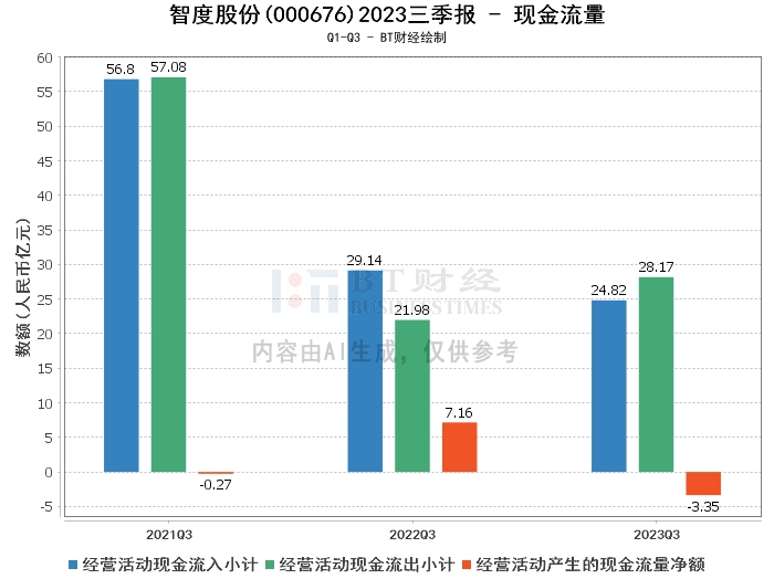 在现金流量方面,2023年三季度,公司经营活动产生的现金流量净额为-3.35亿元,相比上年同期的7.16亿元有所下降。经营活动现金流入小计为24.82亿元,相比上年同期的29.14亿元有所减少。经营活动现金流出小计为28.17亿元,相比上年同期的21.98亿元有所增加。
