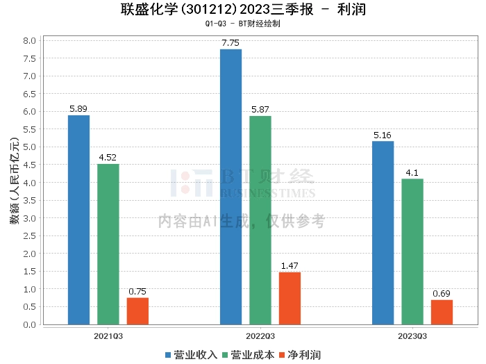 【BT财报瞬析】联盛化学2023三季报:净利润下滑,现金流量净额大幅提升
