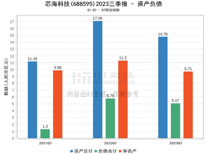 从资产负债方面来看,芯海科技2023年三季度的总资产为14.78亿元,相较于上年度末的17.01亿元有所下降。负债合计为5.07亿元,较上年度末的6.04亿元有所减少。净资产为9.71亿元,相较于上年度末的10.97亿元有所减少。资产负债率为34.32%,较上年度末的35.49%有所下降。