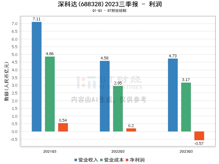 在利润方面,深科达2023年三季度的营业收入为4.73亿元,较上年同期的4.58亿元略有增长。然而,由于期间费用增长幅度高于营业收入增长幅度,加之员工股权激励确认费用、信用减值损失增加及可转债利息费用增加等因素影响,公司的净利润为-5703.04万元,较上年同期的2047.86万元大幅下滑。