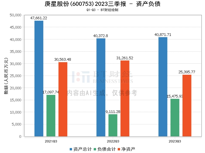在资产负债方面,庚星股份2023年三季度末的总资产为4.09亿元,较上年度末的4亿元有所增加。负债合计为1.55亿元,相比上年度末的7910.1万元有所上升。净资产为2.54亿元,相比上年度末的3.21亿元有所减少。资产负债率为37.86%,较上年度末的19.78%有所增加。
