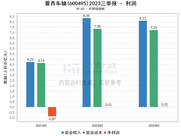 【BT财报瞬析】晋西车轴2023三季报:营业收入及净利润增长,现金流量净额有所下滑