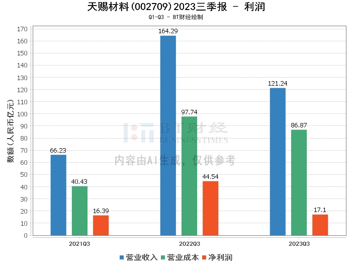 综上所述,天赐材料2023年三季度在资产负债率、营业收入、净利润等主要财务指标上均有所下滑,但在锂离子电池材料业务方面持续发力,展现出良好的市场前景。尽管面临一些挑战,但公司依然保持了稳定的经营态势。