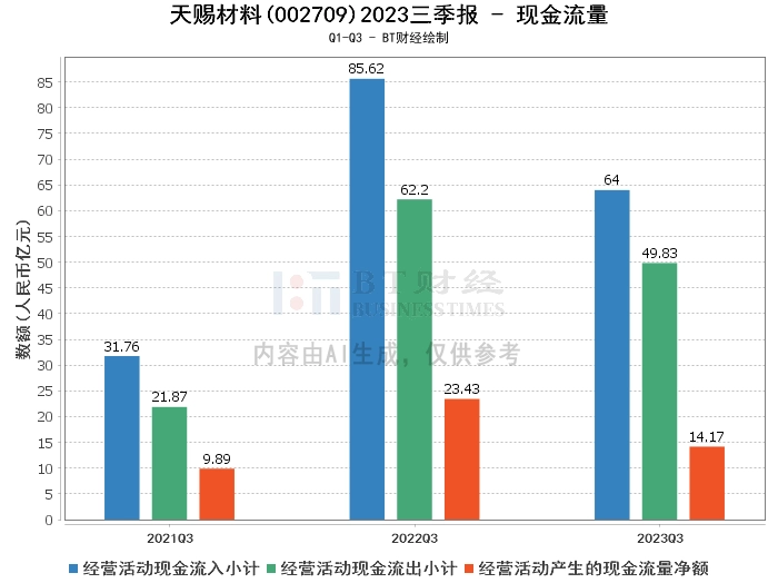 在现金流量方面,经营活动产生的现金流量净额为14.17亿元,较上年同期的23.43亿元减少。经营活动现金流入小计为64亿元,较上年同期的85.62亿元减少。经营活动现金流出小计为49.83亿元,较上年同期的62.2亿元减少。