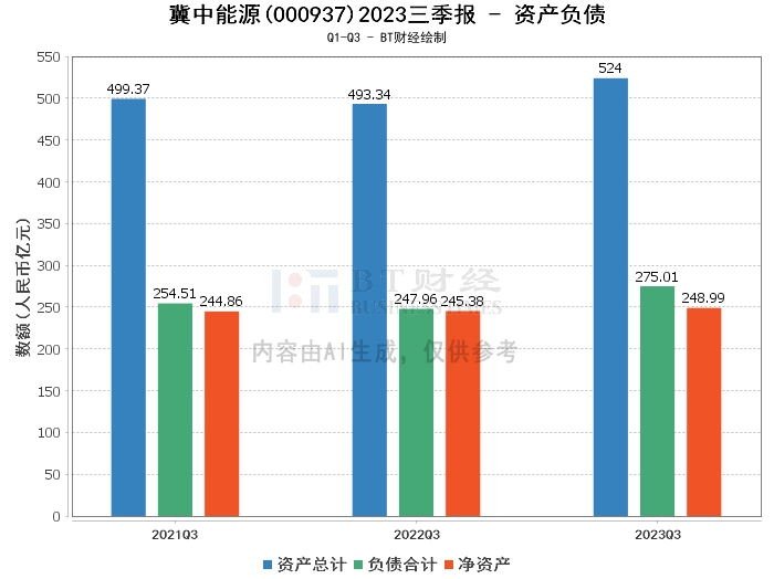 从资产负债方面看,冀中能源2023年三季度的总资产达到524亿元,相比上年度末的514.86亿元有所增长。负债总额也从上年度末的265.55亿元增长到本报告期末的275.01亿元。净资产则从上年度末的249.32亿元略微下降到本报告期末的248.99亿元。资产负债率从上年度末的51.58%上升到本报告期末的52.48%。