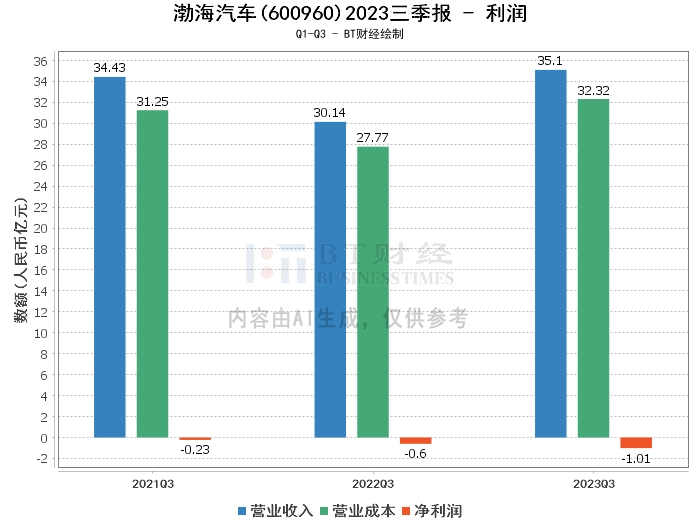 【BT财报瞬析】渤海汽车2023三季报:营业收入增长,净利润受压,现金流量净额有所下滑