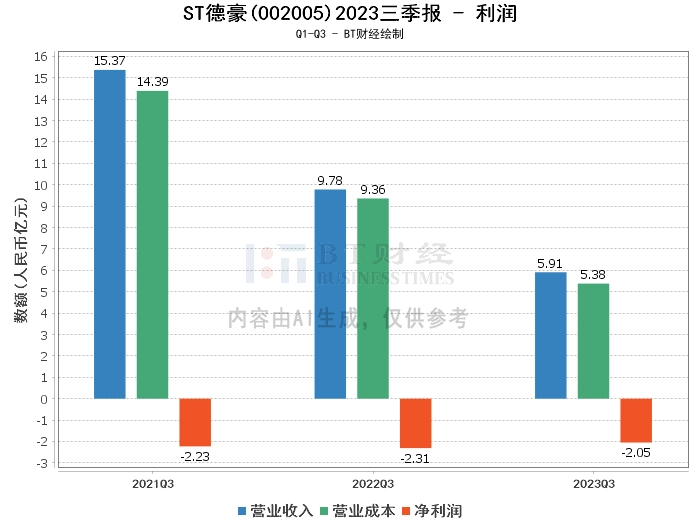 ST德豪(股票代码:002005)是一家专注于小家电和LED封装业务的企业,主要从事产品的研发、制造和销售。在2023年三季度,该公司的财务状况出现了一些重要变化。