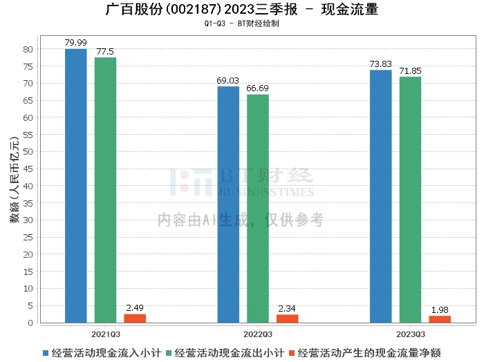 在现金流量方面,经营活动产生的现金流量净额为1.98亿元,较上年同期的2.34亿元有所减少。经营活动现金流入小计为73.83亿元,较上年同期的69.03亿元有所增长。经营活动现金流出小计为71.85亿元,较上年同期的66.69亿元有所增长。