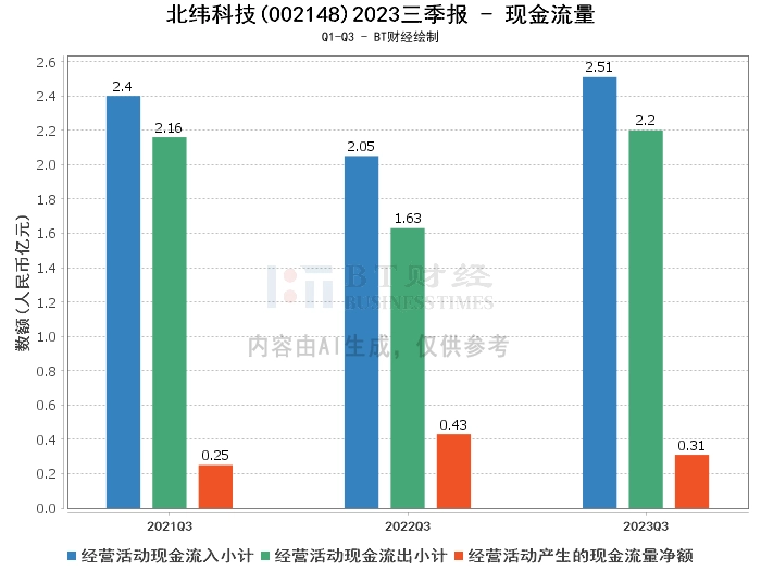 综上所述,北纬科技2023年三季度的总资产和营业收入均有所增长,但净利润和现金流量净额均有所下滑。尽管公司在物联网应用、手机游戏和移动互联网产业园方面都有稳定的市场份额和发展潜力,但在利润和现金流量方面的表现仍需改善。
