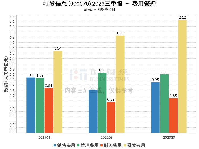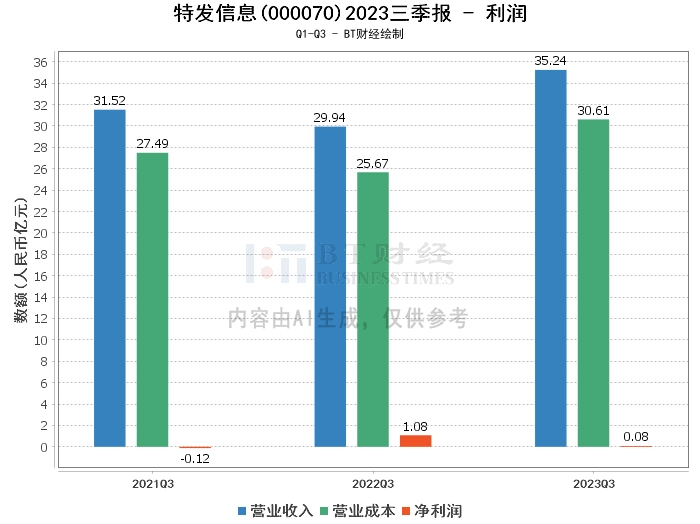综上所述,特发信息2023年三季度的经营情况总体稳定,资产规模在扩大,负债规模基本稳定,净资产有所增加,资产负债结构有所优化。但是,公司的利润水平下降,成本压力增大,盈利能力有所下降,现金流压力较大。这些因素都需要投资者关注。