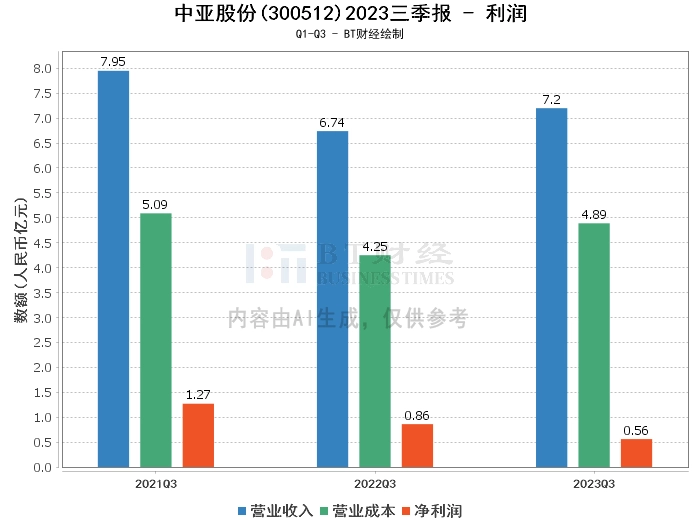 【BT财报瞬析】中亚股份2023三季报:总资产增长5.59%,净利润下滑34.34%