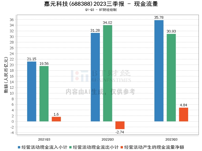 在现金流量方面,嘉元科技2023年三季度的经营活动产生的现金流量净额为4.84亿元,较上年同期的-2.74亿元有明显改善。经营活动现金流入小计为35.78亿元,较上年同期的31.28亿元有所增长。经营活动现金流出小计为30.93亿元,较上年同期的34.02亿元有所减少。