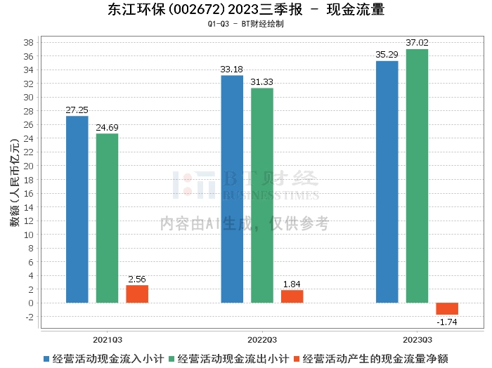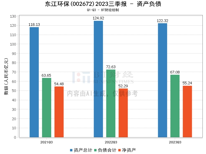 综上所述,东江环保在2023年三季度面临了一些挑战,尽管营业收入有所增长,但由于市场竞争加剧,无害化业务处置价格下降,资源化业务收运折率上升,导致毛利率下降,净利润下滑。同时,经营活动产生的现金流量净额也有所减少。然而,公司的总资产和净资产均有所增长,资产负债率也有所下降,显示出公司在资产负债管理方面的效果。
