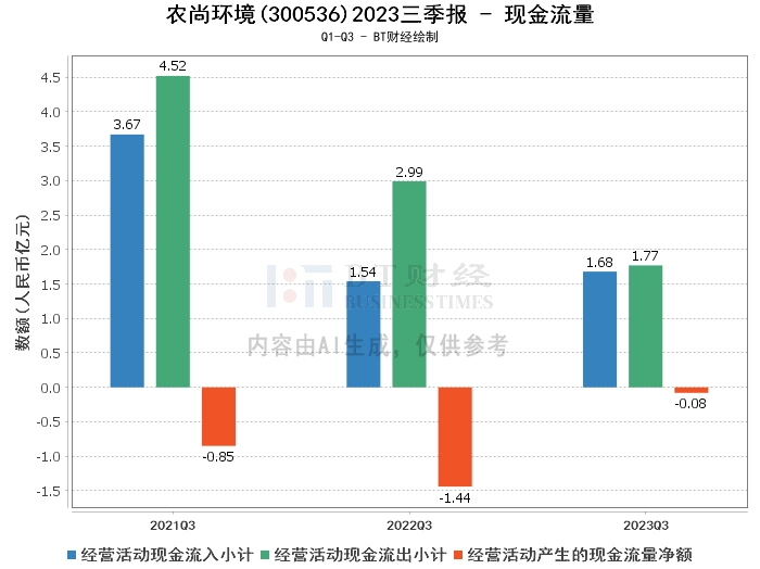 在现金流量方面,年初至本报告期末,农尚环境的经营活动现金流入小计为1.68亿元,较上年同期的1.54亿元有所增加。经营活动现金流出小计为1.77亿元,较上年同期的2.99亿元显著减少。