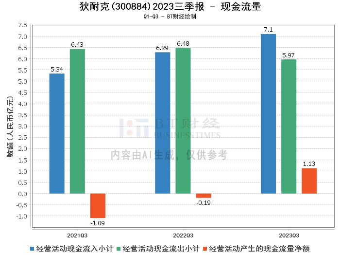 在现金流量方面,公司2023年1-9月的经营活动产生的现金流量净额为1.13亿元,较上年同期的-1929.57万元有显著改善。经营活动现金流入小计为7.1亿元,较上年同期的6.29亿元有所增长。经营活动现金流出小计为5.97亿元,较上年同期的6.48亿元有所减少。