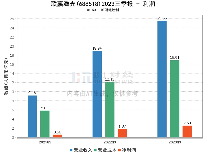 【BT财报瞬析】联赢激光2023三季报:资产总计增长23.04%,营业收入增长34.87%,净利润增长34.76%