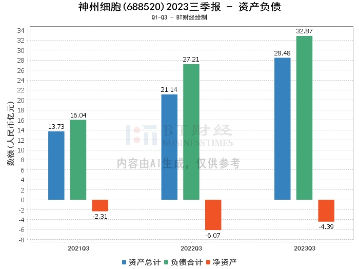 从资产负债方面看,神州细胞2023年三季度末的总资产为28.48亿元,相比上年度末的27.36亿元有所增长。负债合计为32.87亿元,比上年度末的29.78亿元有所上升。资产负债率为115.42%,较上年度末的108.85%有所提高。