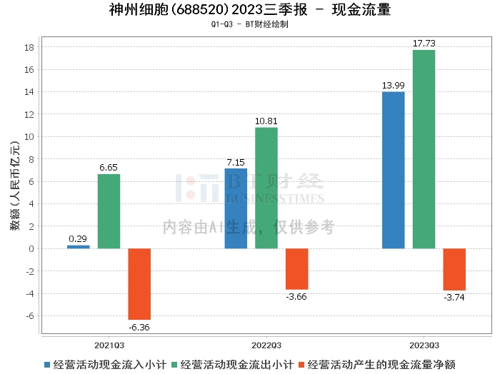在现金流量方面,神州细胞2023年三季度的经营活动现金流入小计为13.99亿元,较上年同期的7.15亿元有所增长。经营活动现金流出小计为17.73亿元,较上年同期的10.81亿元有所上升。